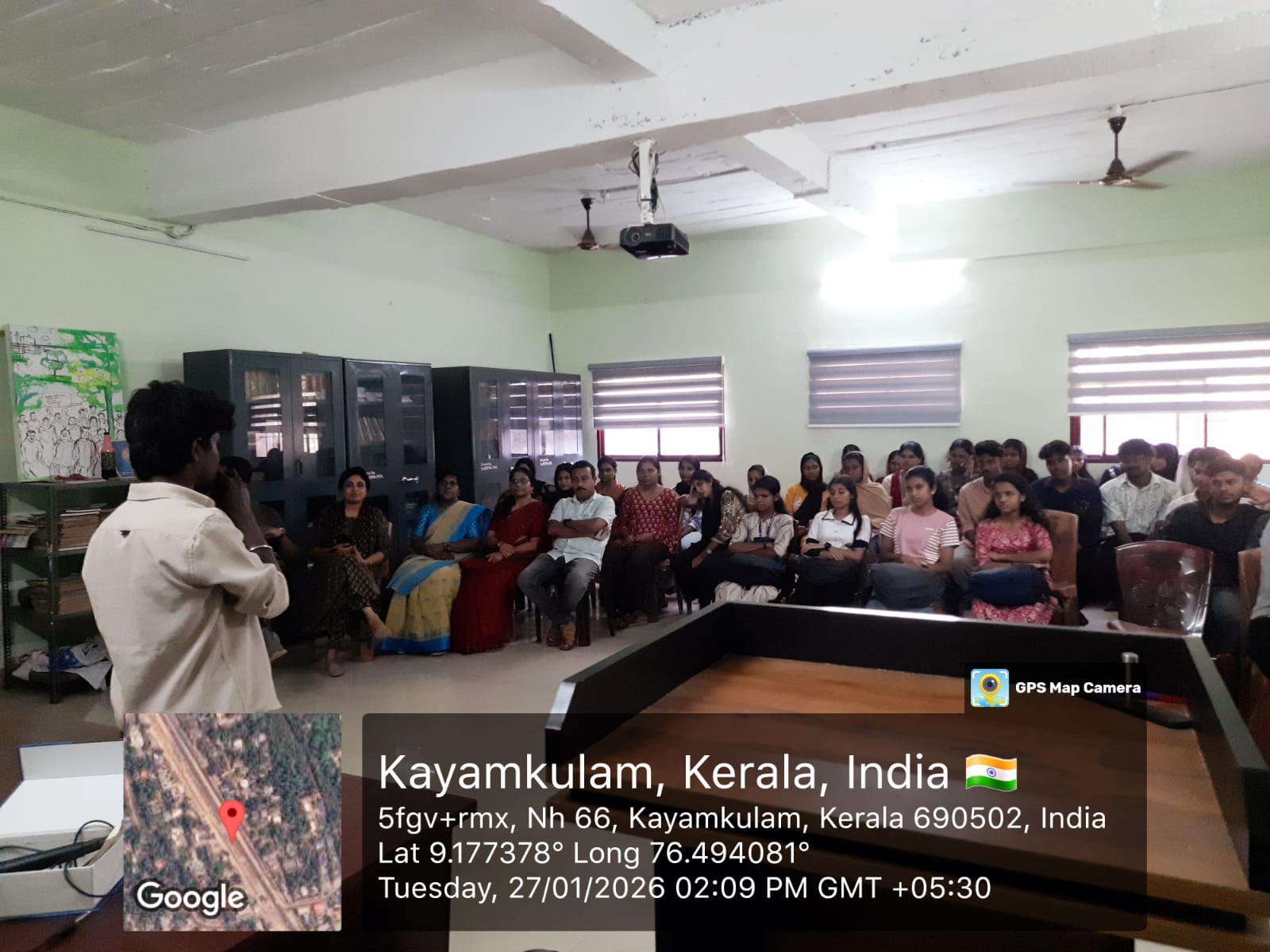 The Commerce Association was inaugurated by Sub. Lt. (Dr.) Vineeth Chandra K. S, Assistant Professor and Head, Department of Commerce, SD College, Alappuzha. He also delivered an invited talk on the topic “Learn with Purpose, Live with Passion,” which motivated students to focus on purposeful learning and personal growth.