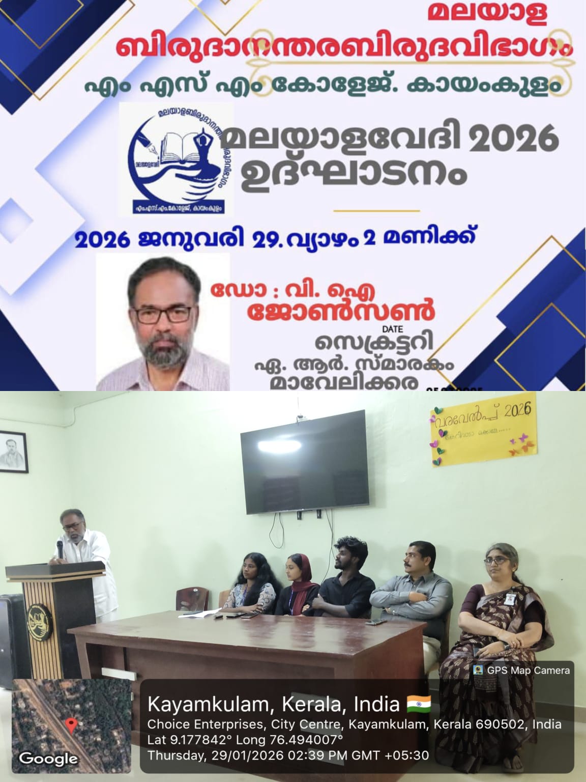 വിദ്യാർത്ഥികളുടെ സർഗ്ഗവാസനകളെ പരിപോഷിപ്പിക്കുകയും ഭാഷാസാംസ്കാരിക ബോധം വളർത്തുകയും ചെയ്യുന്നതിനായി സംഘടിപ്പിച്ച എം. എസ്.എം. കോളേജ് മലയാളം അസോസിയേഷൻ
