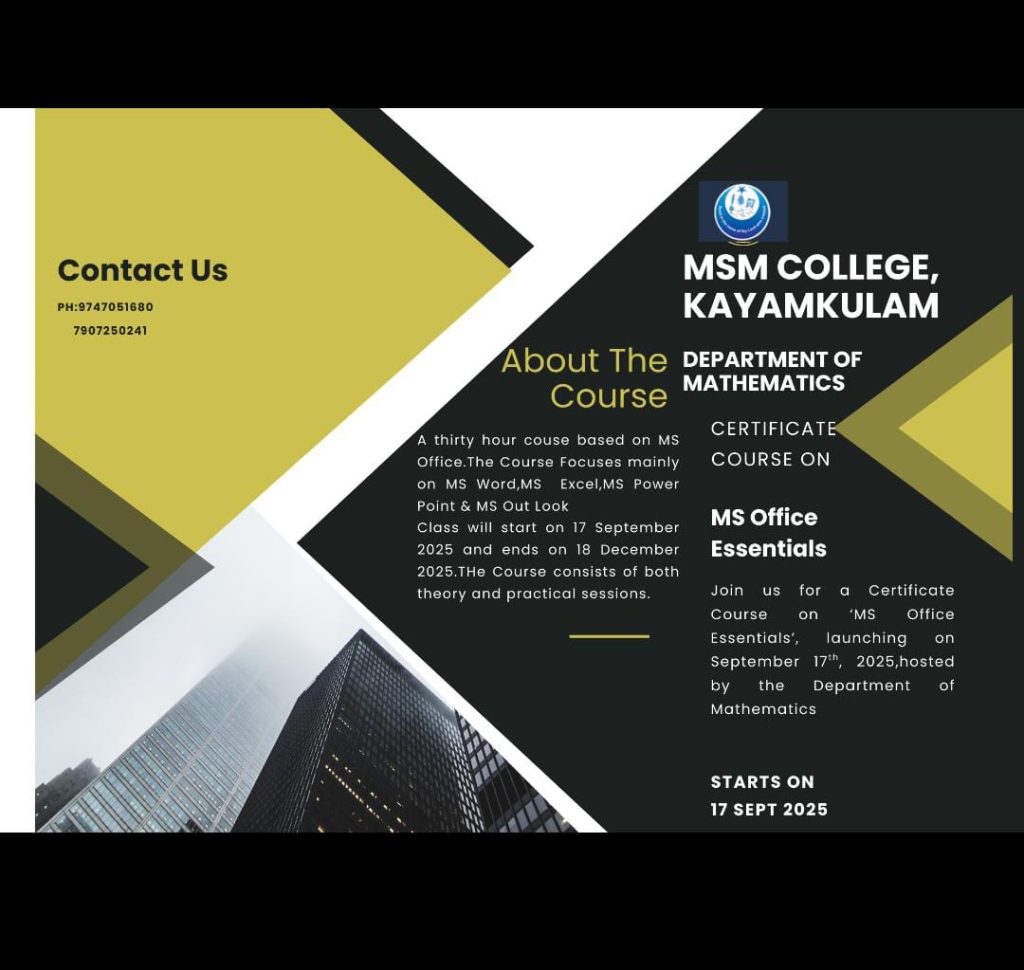 - Two day Faculty Development Programme on Effective Course Delivery using MOODLE from 03-09-2019 to 04-09-2019 conducted by IQAC,MSM College in Association with ICT Academy of Kerala