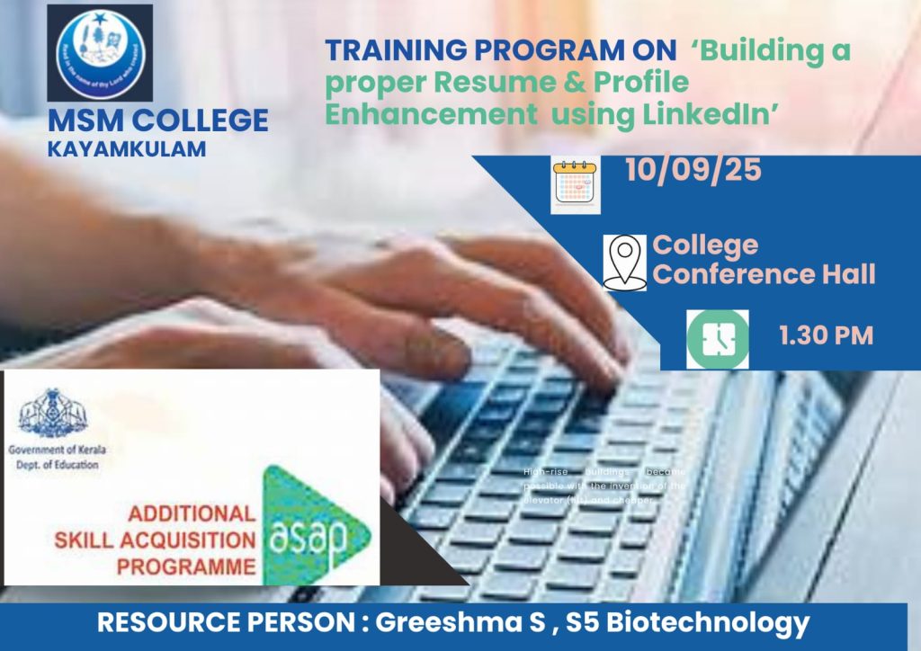 Training program on ‘Building a proper resume & profile enhancement using LinkedIn’