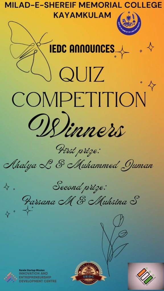 In the ‘Ente Keralam’ program jointly organized by Kerala Startup Mission and Innovation and Entrepreneurship Development Center (IEDC) on the occasion of the fourth anniversary of the Kerala government, the exhibition pavilion represented by MSM College Kayamkulam IEDC won first place in Alappuzha district and third place in Kannur district in the Best Theme Pavilion category. MSM College IEDC achieved this achievement in the exhibition in which more than 100 institutions from government, semi-government and other sectors participated. MSM College was represented in Alappuzha district by Shabik Ali, second-year political science student, and Fathima Abdul Latheef, third-year zoology student, in Kannur district