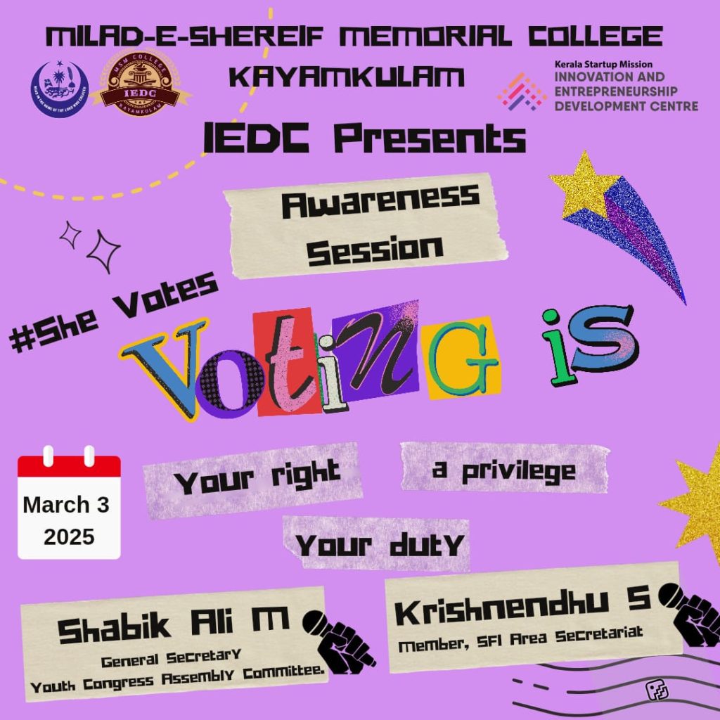 Shabik Ali , S3 Political Science student and MSMC IEDC Student Lead , has been selected to the Super 30 team of India's largest innovation festival, Kerala Innovation Festival (KIF 2025). Congratulations Heartfelt congratulations to Shabik Ali and MSMC IEDC 💐💐.