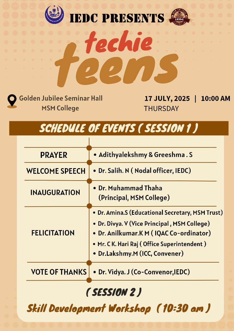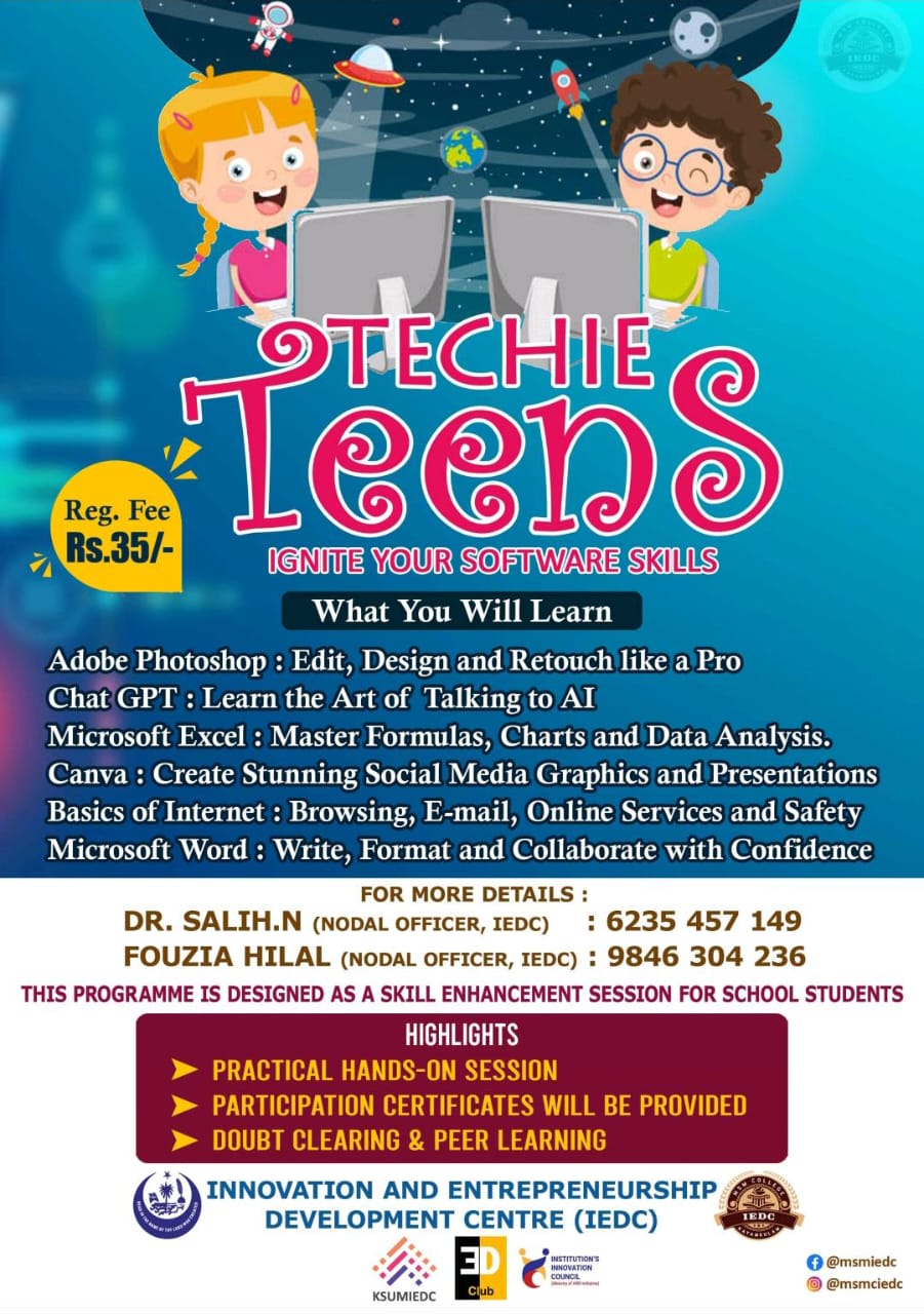 - EMAIL ADDRESS: iedc@msmcollege.in, msmciedc@gmail.com