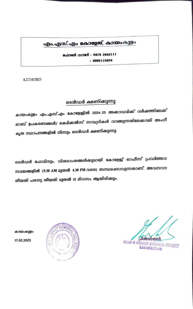 M. S. M College invites tenders