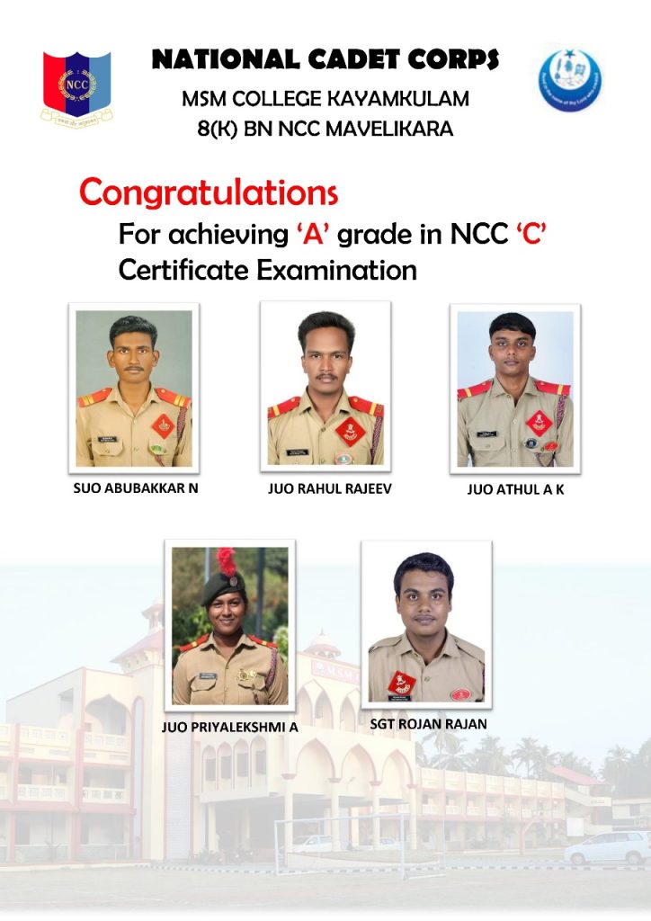 Best institution award for swatch bharath Battalion level 2019-20. One Cadet selected for Repulic Day parade in 2019 Faizal Khasim