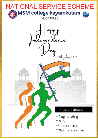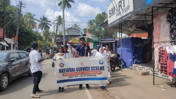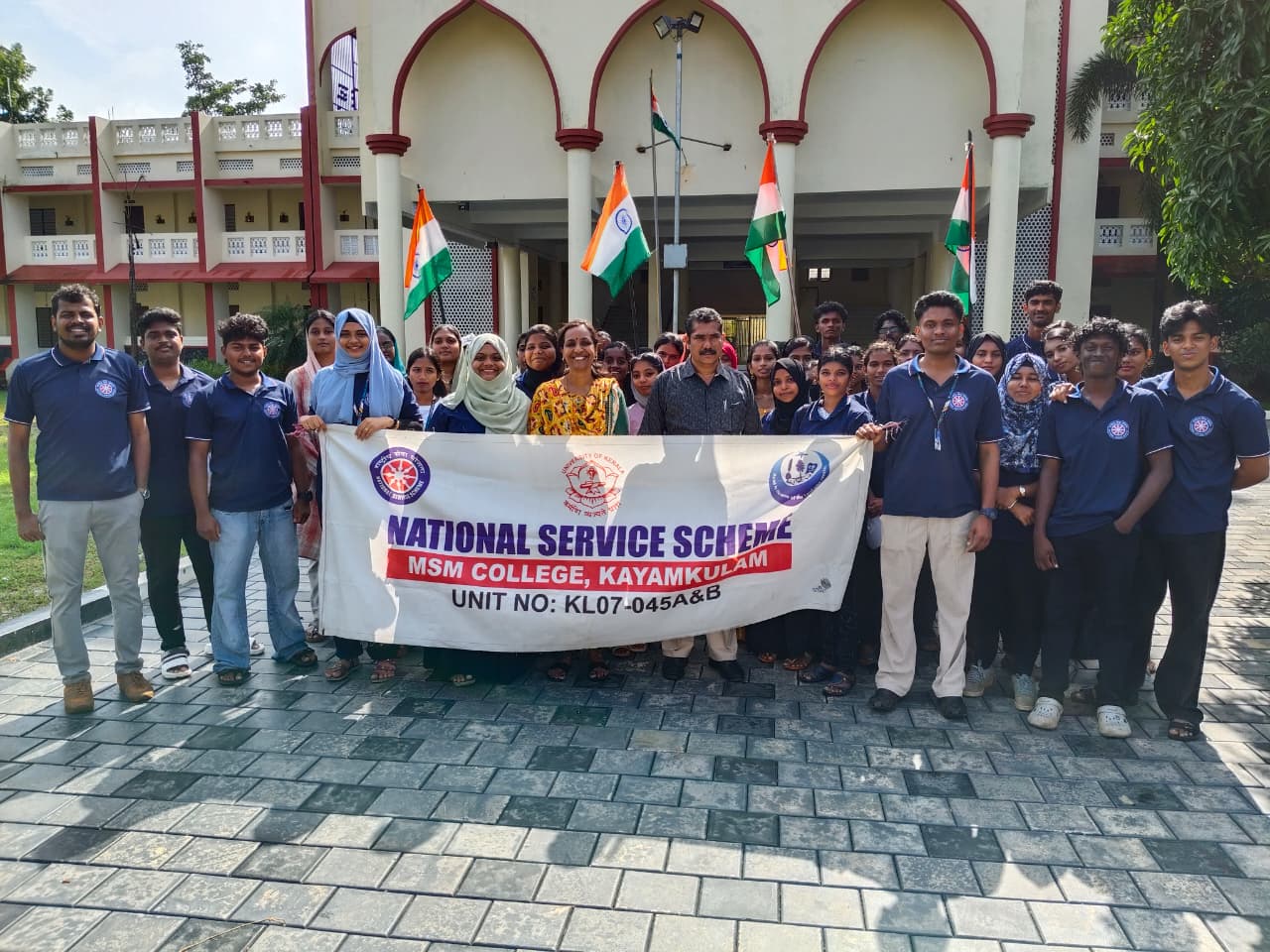 The NSS Unit of MSM College, Kayamkulam, organized the 79th Independence Day celebrations of India under the campaign “Mera Bharat” with a variety of programs.