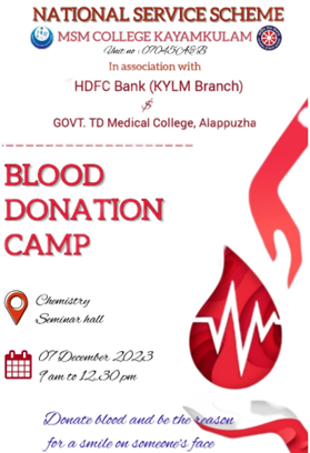 BLOOD DONATION CAMP IN ASSOCIATION WITH GOVT. TD MEDICAL COLLEGE ALAPPUZHA