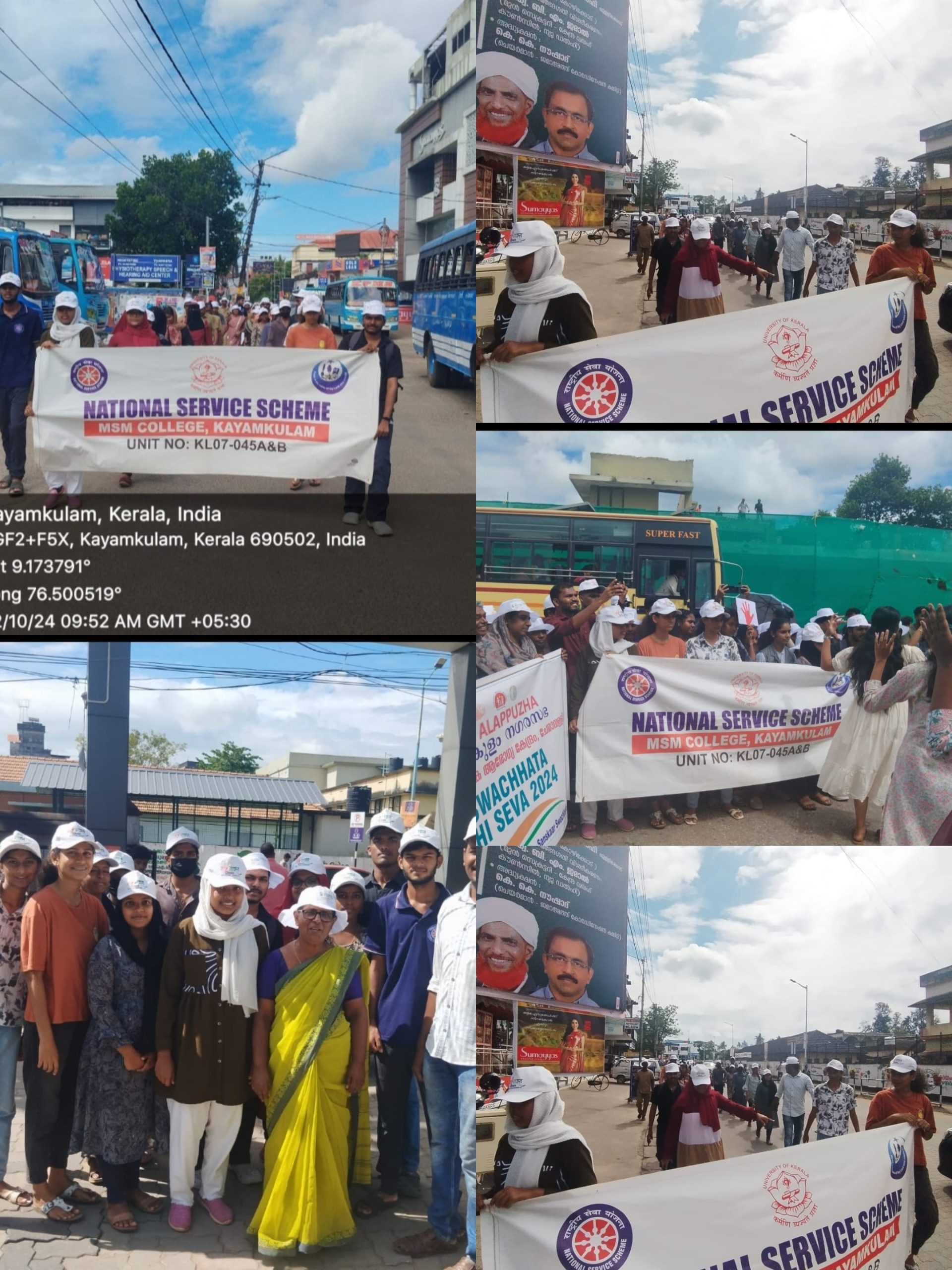 "Kayamkulam Municipality, along with the bus stand, organized cleanliness activities and an MSMC NSS unit rally as part of the Swachh Bharat Abhiyan."