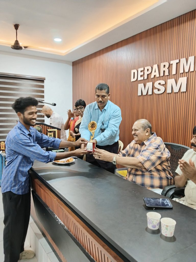 In an emotional yet inspiring speech, Prof. (Dr.) K. I. Razia reflected on her journey at M S M College. She expressed gratitude to her colleagues, students, and the institution for their support and shared memorable moments from her career. The event also included a prize distribution ceremony where meritorious students were honored for their academic and extracurricular achievements. The ceremony concluded with a heartfelt vote of thanks by Anwar Hussain, Treasurer, PTA. He expressed appreciation to all guests, faculty members, and attendees for making the event a grand success.