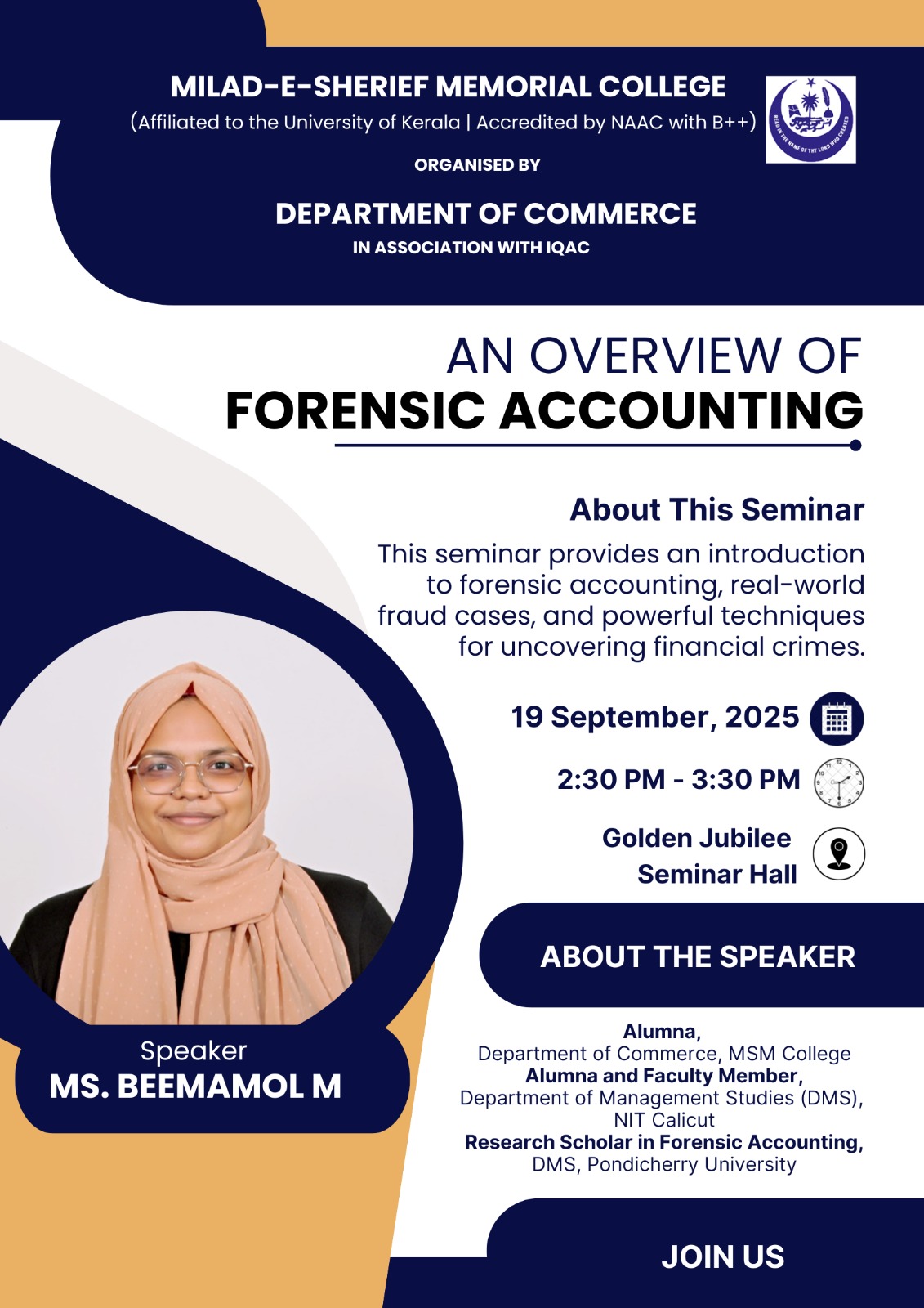 MSM college was founded by late Al-Haj P. K. Kunju Sahib as a realisation of his long cherished dream of cultural advancement of the uneducated people of central Travancore. “MSM”, Milad-E-Sherief Memorial is a reminiscent of Milad-E-Sherief, the sacred birth day of the Holy Prophet.
