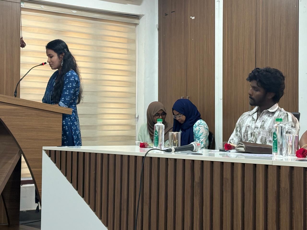 GENDER EQUITY, DEFINED BY THE EUROPEAN INSTITUTE FOR GENDER EQUALITY, IS THE “PROVISION OF FAIRNESS AND JUSTICE IN THE DISTRIBUTION OF BENEFITS AND RESPONSIBILITIES BETWEEN WOMEN, MEN AND ALL GENDERS.” GENDER EQUITY IS VITAL BECAUSE, HISTORICALLY, SOCIETIES AROUND THE WORLD HAVE DEEMED FEMALES, TRANSGENDER PEOPLE, AND NONBINARY PEOPLE AS “WEAKER” OR LESS IMPORTANT THAN MALES. ELIMINATING ALL DISCRIMINATION ON THE BASIS OF GENDER IS A BASIC HUMAN RIGHT. IT IS ALSO IMPORTANT FOR MENTAL DEVELOPMENT, ECONOMIC GROWTH AND SUSTAINABLE FUTURE. SO, TO GIVE THE STUDENTS A UNIQUE PERSPECTIVE ON THE WORLD AND HELP THEM UNDERSTAND HOW GENDER SHAPES THEIR LIVES AND THE LIVES OF OTHERS, DEPARTMENT OF ENGLISH ORGANIZED A GENDER SENSITIZATION PROGRAMME TITLED “EQUAL VOICES, EQUAL CHOICES” ON 19TH JULY 2025. AN COMPREHENSIVE AND INFORMATIVE TALK BY THE RESOURCE PERSON DR. M.N. PARASURAMAN THREW LIGHT ON THE SOCIETAL ATTITUDE TOWARDS GENDER EQUITY IN INDIA IN PARTICULAR AND GENDER EQUALITY IN GENERAL. HE HIGHLIGHTED THE MAJOR CHALLENGES IN THE STREET AHEAD AND SUGGESTED THE CORRECTIVE MEASURES TO OVERCOME THOSE. THE TALK HAS BEEN COORDINATED BY GRISHA ANAND AND B.S. FARZANA. OUR STUDENTS BELONGING TO FIRST, SECOND AND THIRD YEAR OF B.A LITERATURE AND COMMUNICATIVE ENGLISH AND P.G CLASSES BENEFITTED FROM THE SESSION. THE SESSION WAS INSPIRING FOR THE STUDENTS AND IT ENDED WITH AN INTERACTIVE SESSION BETWEEN THE RESOURCE PERSON AND THE STUDENTS AND FACULTY PRESENT FOR THE SESSION.