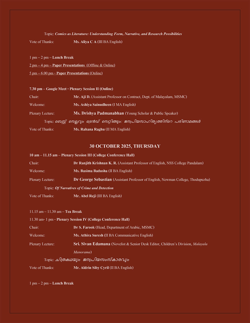 | 6 | ABHIRAMI RAJEEVAN | S1 FYUGP ENGLISH |