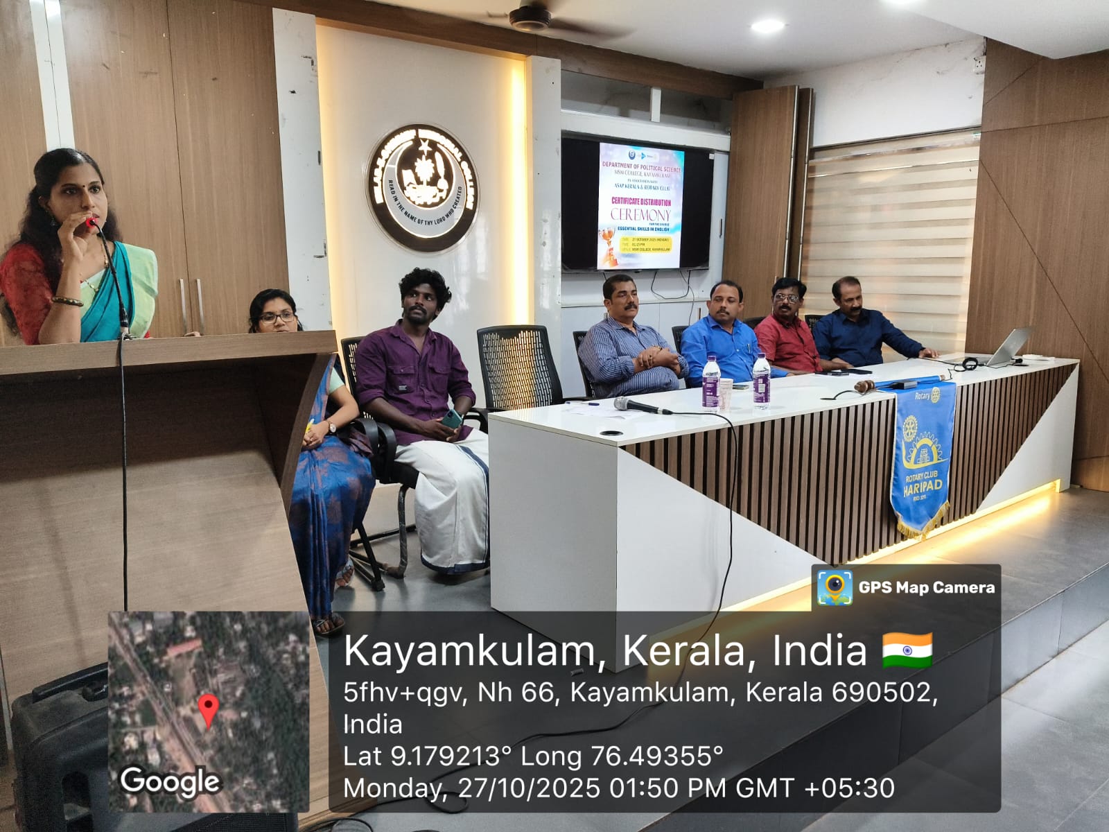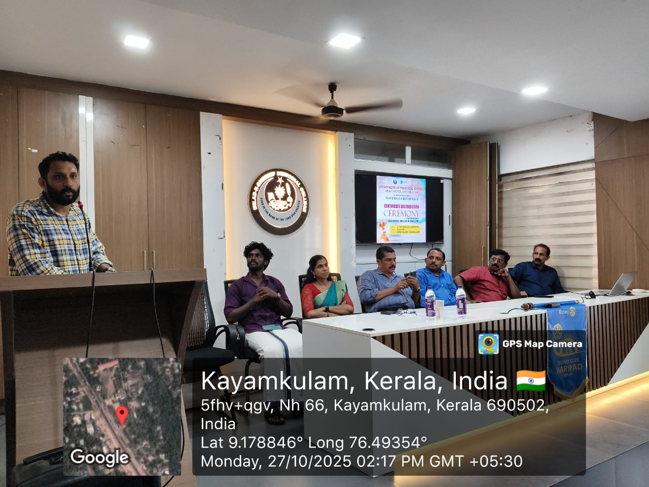 The department of Political Science, M.S.M College,Kayamkulam organized a lecture on “Women and Law in the Indian Constitution” in association with the Institute of Parliamentary Affairs,Government of Kerala and FDSJ on 13/12/2022.